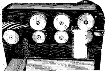Перед барабанами устанавливается гребенка, которая перед каждым очком барабана имеет отверстие и две направляющих. Это делает невозможным образование на жгуте заусенцев. Барабаны могут подогреваться паром, проходящим внутри них по змеевику, или электрическим током. При работе температура поверхности барабана должна быть равна температуре жгута.