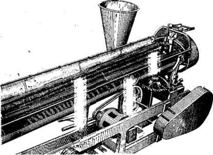 На Киевской фабрике им. Карла Маркса сконструирован на-чинконаполнитель для густых начинок (ореховых и др.). В нем густые начинки продвигаются по трубке начинконаполнителя при помощи шнека, расположенного в трубке. Применение таких наполнителей дает возможность изготовлять все сорта карамели с начинкой с применением механизированного способа образования карамельного батона.