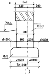 В данной курсовой работе запроектированы сборные железобетонные ленточные фундаменты, состоящие из фундаментных блоков плит и стеновых фундаментных блоков. Глубина заложения фундаментов-2,6м. Отметка подошвы-2,3м.
