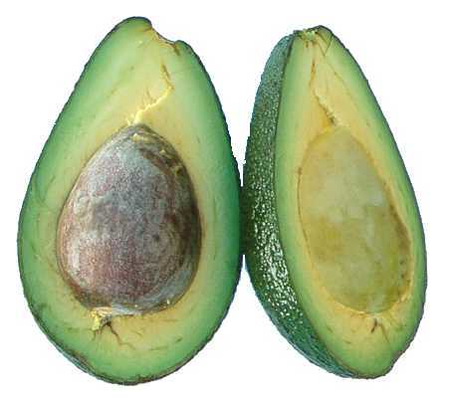 Но при этом авокадо – самый натуральный фрукт с большой косточкой внутри. Растет на деревьях до 20 м высотой, где в пышной раскидистой кроне, как елочные игрушки, покачиваются яркие, с блестящей кожурой (желтоватой, темно-зеленой и даже фиолетовой) плоды.