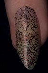 С блёстками. Прозрачный (цветной) лак с добавлением блестящей мишуры разной формы, размеров, цветов.