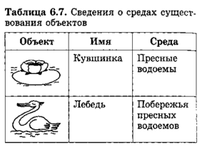 Сведения о средах существования объектов можно также представить в табличной форме, что позволит легко провести сравнение объектов друг с другом. Посмотрите на таблицу 7. Объект может изменить свое состояние, если попадает в другую среду.