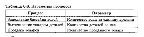Процессы характеризуются свойствами и параметрами. Например, движение характеризуется скоростью, продолжительностью, пройденным расстоянием. Вам известны формулы, связывающие эти параметры: S = vt. Некоторые характеристики процессов представлены в таблице 6.