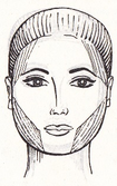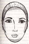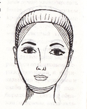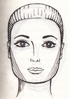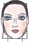 Прямоугольное лицо похоже на квадратное, но более вытянутое, нижняя челюсть четко выражена. Характерен высокий лоб и удлиненный подбородок. Необходимо визуально расширить лицо, высветляя боковые поверхности светлым тонирующим средством, на среднюю часть щек нанести румяна в форме растушеванных овалов. Слишком высокий лоб или длинный подбородок затемняются румянами натурального оттенка.