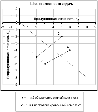 Рис. 2. Шкала сложности для двух комплектов из 2-х задач.