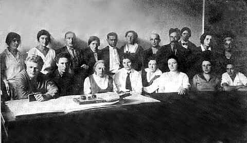 П.П. Блонский стоит (пятый слева) за Н.К. Крупской