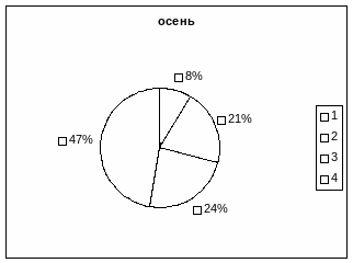 Так как следует из рисунка 5 осенью количество детей с высоким значением ДП снизилось на 6% (с28% до 22%), очевидно за счет небольшого (3%) увеличения учащихся со средним значением индекса Робинсона, при этом на 3% и 6% соответственно увеличилось количество детей с ниже среднего и низким значением ДП. Это свидетельствовало об неудовлетворительной адаптации этих детей к новой системе обучения, они плохо справлялись с учебной нагрузкой. Причиной таких изменений может быть недостаточная двигательная активность, кроме того на величину артериального давления и ЧСС большое влияние оказывает центральная нервная система, которая в связи с изменением условий обучения может находиться с состоянии напряжения, вследствие чего изменяются вегетативные функции, в том числе и показатели сердечно-сосудистой системы. Низкая оценка индекса Робинсона свидетельствует о нарушении в регуляции сердечно-сосудистой системы (ССС).