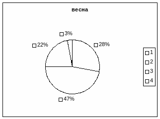 О функциональном состоянии кардесо-респираторной системы свидетельствует индекс Скибинского (ИС), при низкой оценке ИС можно говорить о недостаточных функциональных возможностях органов дыхания и кровообращения и сниженной устойчивости организма к гипоксии. Как следует из результатов, представленных в таблице №1, весной у большинства обследованных учениц (47%) были средние показатели значения ИС, у 13% школьниц – высокие и стольких же 13% - низкие. У 20% девочек весной значение индекса Скибинского были ниже среднего и у 7% (одна девочка) – выше среднего. То есть резюмируя можно сделать вывод, что у 33% девочек состояние кардиореспираторной системы весной отличались сниженной устойчивостью к гипоксии.