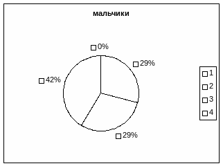 У обследованных мальчиков наблюдалась аналогичная картина, так осенью по сравнению с весной отмечалось уменьшение количества учеников с высоким значением ДП с 35% до 29%, т.к. у одного мальчика осенью индекс Робинсона оценивался как средний, у него произошло увеличение артериального давления и ЧСС.