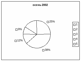 Как следует из данных, представленных на рисунке № 10 «Б», осенью нет ни одной девочки с высокой оценкой ИР, а у 20% учениц оценка ИР была выше средней, это на 7% больше, чем весной. Количество девочек со средней оценкой индекса Руфье увеличилось осенью на 6% и составило 46%, это означает, что у двух девочек Нины П. и Кати П. адаптационные резервы кардиореспираторной системы осенью несколько снизились. Количество учениц с низкой и ниже средней оценкой индекса Руфье осенью не изменилось 7% и 27% соответственно. Как следует из данных, приведенных на рисунке № 10 «Д», количество мальчиков с низкой 6%, ниже среднего 29% и средней 29% оценками индекса Руфье осенью не изменилось, но несколько снизились адаптационные резервы кардиореспираторной системы у Кирилла П., т.к. его высокая оценка ИР весной стала выше средней осенью, но в целом у мальчиков функциональное состояние и резервные возможности сердечно – сосудистой и дыхательной систем лучше, чем у обследованных девочек, что очевидно связано с их больней двигательной активностью. Достоверно установлено, что количество занятий физическими упражнениями для адекватного развития организма школьников, предусмотренное существующим ныне учебным планом, недостаточно, т.к. школьные уроки физической культуры (2 часа в неделю) восполняют двигательный дефицит только на 11% (Солодков А.С., Сологуб Е.Б., 2001г.).