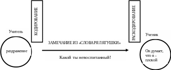 Если же хотите сделать замечание, которое полностью бы соответствовало тому, что происходит у вас внутри, то следует прибегнуть к «Словарю принца». В этом случае вы сообщаете о том, что переживаете, и ваше замечание раскодируется как ВЫСКАЗЫВАНИЕ ОБ УЧИТЕЛЕ: