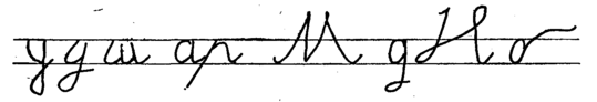 Какое расстояние нужно оставлять между словами? (Примерно равное букве и строчной.) На каком месте должно быть пересечение петли у букв у, д? (На нижней строке.) На какой высоте следует начинать поперечное соединение у буквы м? (На середине строки, если пишут по двойной разлиновке.) На какой высоте следует соединять буквы мил? (Примерно треть высоты буквы.) Какой высоты должно быть нижнее закругление у буквы в? (Примерно две трети высоты буквы). Какой, высоты должна быть петля у буквы е? (Чуть больше половины высоты буквы.) И т. д.