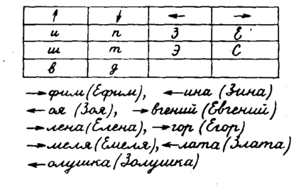 Рассмотрим «шифровки» лево- и правоориентированных, вверх и вниз направленных оптически сходных букв: