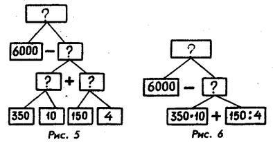 ыполняя неполный анализ от вопроса, учащиеся рассуждают примерно так: «Чтобы ответить на вопрос задачи, надо знать, сколько всего яиц надо отправить (6000 яиц) и сколько яиц птицефабрика уже отправила. Чтобы узнать, сколько яиц фабрика отправила, надо знать, сколько она отправила в первый и во второй раз. В первом вопросе узнаем, сколько птицефабрика отправила яиц в 10 ящиках, во втором — сколько она отправила яиц в 4 ящиках, в третьем —сколько всего яиц птицефабрика отправила и в четвертом — сколько яиц осталось отправить. Схемы полного анализа (рис. 5) и неполного (рис. 6) наглядно показывают' преимущество и недостатки каждого из них.