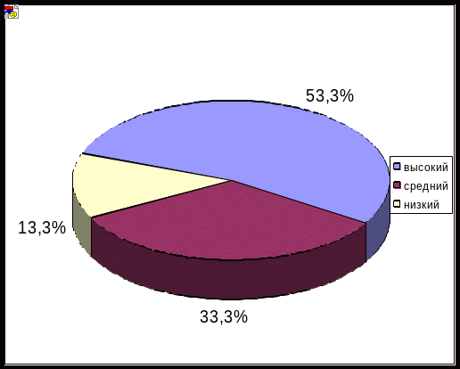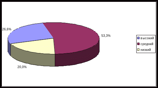 Сначала проведем обобщенный анализ данных. В результате получается, что количество детей с низким уровнем составляет 20 %, со средним – 53,3%, с высоким – 26,6 %.