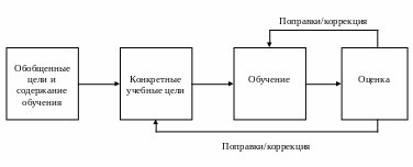 На этой схеме еще трудно усмотреть специфические черты технологии обучения; в самом деле, общие цели обучения и содержание выделяются всегда; в любом учебном процессе более конкретные учебные цели, результаты обучения всегда подвергаются оценке.