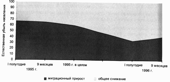 С 1992 г., впервые за послевоенную историю России, началась естественная убыль населения. Годовое число умерших стало превышать число родившихся. Масштабы убыли растут год от года: с 207 тыс. человек в 1992 г. до 738 тыс. человек в 1993 г. и 889 тыс. человек в 1994 г.
