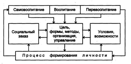 В целостном педагогическом процессе важное место занимает процесс воспитания. Сущность, а также место и роль этого процесса легче всего обнаружить, рассматривая его в структуре более общего процесса формирования личности (рис. 1).