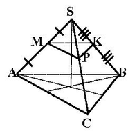 Пусть SABC тетраэдр. MKP- середины ребер SA, SB, SC