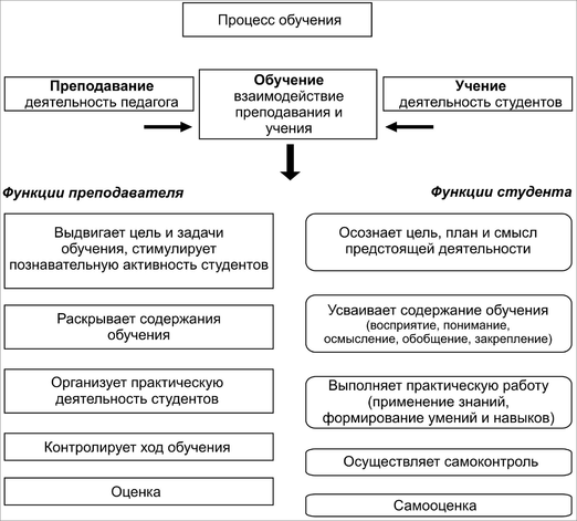 Процесс обучения – это целенаправленный процесс взаимодействия педагога и студента, направленный на формирование у студентов знаний, умений и навыков, развитие мышления и способности к творчеству, воспитание личностных качеств.
