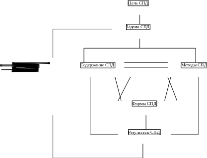 Цель СПД и ее конечные результаты зависят от того, насколько правильно определено содержание, какие выбраны методы для ее достижения и формы ее организации этой деятельности. Понятно, что содержание, методы и формы могут существовать независимо друг от друга, их взаимосвязь определяется тем, что содержание влияет на формы и методы, те в свою очередь могут корректировать содержание и формы; кроме того, формы и методы также взаимосвязаны (схема1).