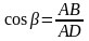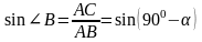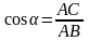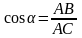 измерить (по клеткам) прилежащий катет АС и гипотенузу АВ;