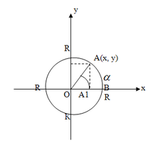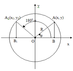 Рассмотрим окружность с центром в начале координат произвольного радиуса R. Откладываем в полуплоскость