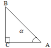 измерить транспортиром угол α, найти его величину и записать значение косинуса этого угла данного прямоугольного треугольника.
