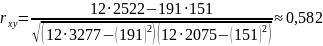 является приближенным, поскольку в рассмотренном примере есть так называемые связанные ранги. В этом случае лучший результат дает применение следующей формулы, которая эквивалентна предыдущей: