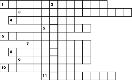 По горизонтали: 1. Зоны коры головного мозга, обеспечивающие взаимодействие между анализаторами. 3. Нарушение зрения вследствие уменьшения выпуклости хрусталика. 4. Образование, на котором находятся слуховые рецепторы. 5. Спирально закрученный костный канал. 6. Восприятие запахов. 7. Важнейшее кожное чувство. 8. Мелкая косточка среднего уха. 9. Слуховая косточка. 10. Нервные окончания, расположенные в органах чувств. 11. Структура глаза, преломляющая световые лучи.