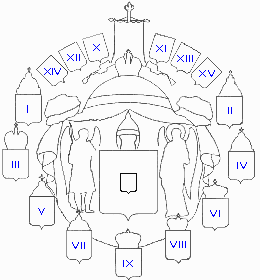 XIV. Щит соединенных гербов северо-восточных областей: в малом щите герб Пермский.