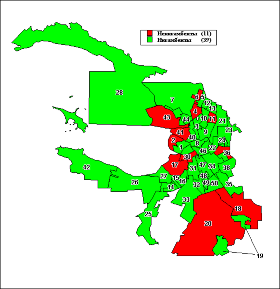 Кроме того, от всех объединений, от которых были выдвинуты инкамбенты, остальные претенденты не перешагнули нулевой порог успешности, а переизбиравшиеся имели очевидное преимущество.
