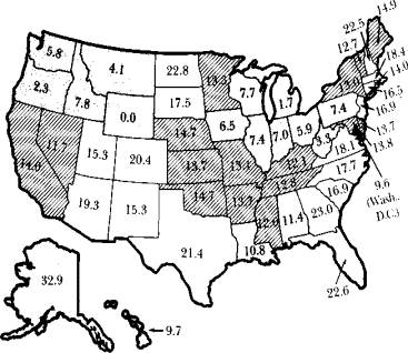 Изменения, произошедшие в личных доходах населения за 1980-1984 года, по штатам[13]