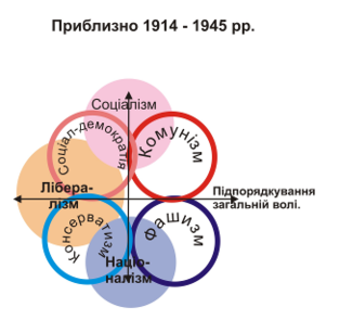 Спочатку комунізм та фашизм являли собою крайні форми соціалізму й націоналізму відповідно. У період між світовими війнами вони набирають сили та перетворюються на самостійні політичні ідеології.