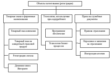 Рис. 1. Объекты патентования (регистрации) в страховом деле