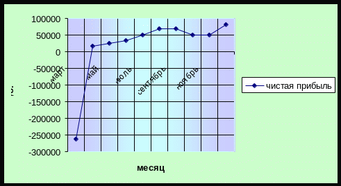 | чистая прибыль | -358272,6625 | 16189,483 | 24825,105 | 33460,728 | 50731,974 | 68003,219 | 68003,219 | 50731,974 | 50731,974 | 80429,465 | 138575,38 |