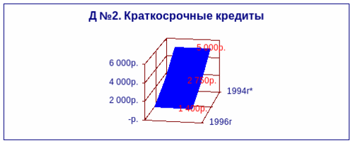 Из Диаграммы №2 мы можем сделать следующий вывод – с каждым годом предприятие нуждается всё меньше в заёмных средствах. Соответственно мы можем предположить, что при такой динамике через некоторое время (не более чем через год) предприятие вообще откажется от кредитов. Зная общую положительную тенденцию на фабрике, можно предположить, что уже с 1998г предприятие начнёт постепенно отдавать долгосрочный заем, но небольшими суммами. Хочу сразу оговорить то, что это возможно только в случае согласия банка. Зная реальное положение на рынке кредитования, единственное, что возможно спрогнозировать так это то, что банк не согласиться, и к концу 2000г потребует оплаты и причём с процентами. Естественно, что предприятие, не обладающее нужной суммой денег, вынуждено будет просить продления кредита либо, что более вероятно, продать часть оборудования, так как другие объекты не имеют особой ценности.