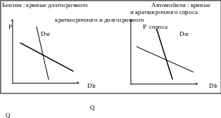 Пример: Резкое повышение цен на бензин, уменьшает количество его продаж в краткосрочном периоде, но это влияет на спрос на автомобили, который может изменяться только в долгосрочном периоде.
