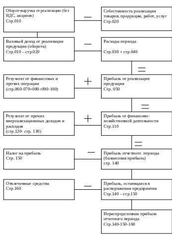 Рис. 1.2 Модель хозяйственного механизма предприятия, основанная на формировании прибыли (указаны строки формы №2)