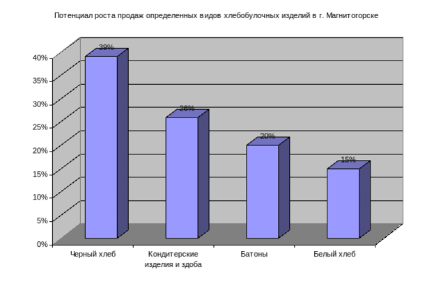 Рис.4 . Потенциал роста продаж определенных видов хлебобулочных изделий в г.Магнитогорске