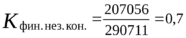 I Коэффициент финансовой независимости указывает, в какой степени деятельность предприятия финансируется за счёт собственных средств: