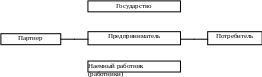 Основным субъектом предпринимательской активности выступает предприниматель. Однако предприниматель — не единственный субъект, в любом случае он вынужден взаимодействовать с потребителем как основным его контрагентом, а также с государством, которое в различных ситуациях может выступать в качестве помощника или противника. И потребитель и государство также относятся к категории субъектов предпринимательской активности, как и наемный работник (если, конечно, предприниматель работает не в одиночку), и партнеры по бизнесу (если производство не носит изолированного от общественных связей характера) (рис. 1).