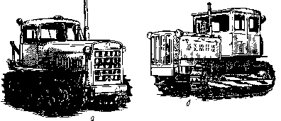 б) гусеничні, ходова частина яких має гусеничні движителі.