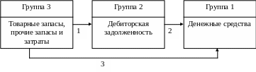 Представленные на схеме связи отражают последовательную трансформацию оборотных средств из одной группы активов в другую (группы выделены по степени мобильности текущих активов):