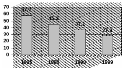 Диаграмма 1. Динамика числа малых предприятий России, воспользовавшихся ссудами банков в период 1995-1999 гг. (в процентах).2