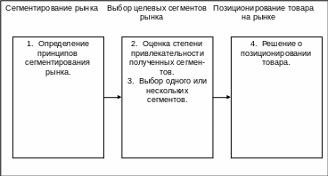 На данном этапе мы прибегаем к целевому маркетингу, т.е. производим разграничения между сегментами рынка которые в основном будем обслуживать, это требует проведения трех основных мероприятий (рисунок № 17).