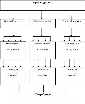 При этом инициатором создания такого структурно – сложного канала распределения может выступать любой уровень – производитель, оптовый или розничный торговец.