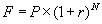 где F - будущая, а P - современная ценность (исходная величина) денежной суммы, r - процентная ставка (в десятичном выражении), N - число периодов начисления процентов.
