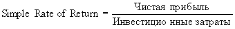 Метод определения бухгалтерской рентабельности инвестиций (коэффициента эффективности инвестиций – (ROI) ориентирован на оценку инвестиций на основе не денежных поступлений, а бухгалтерского показателя – дохода фирмы. Этот показатель представляет собой отношение средней величины дохода фирмы по бухгалтерской отчетности к средней величине инвестиций. Показатель ROI приобрел наибольшую популярность при оценке инвестиционных проектов, связанных с разработкой финансовыми организациями и банками новых типов их услуг, так как основные активы этих организаций представляют собой денежные средства, а значит здесь очень мала амортизация и не требуется оборотный капитал. Кроме того, в акционерных обществах, получивших широкое распространение в России, этот показатель ориентирует менеджеров на те инвестиционные проекты, которые прямо связаны с уровнем бухгалтерского дохода, интересующего акционеров в первую очередь.