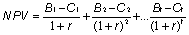 где: NPV — чистые приведенные денежные потоки проекта ();